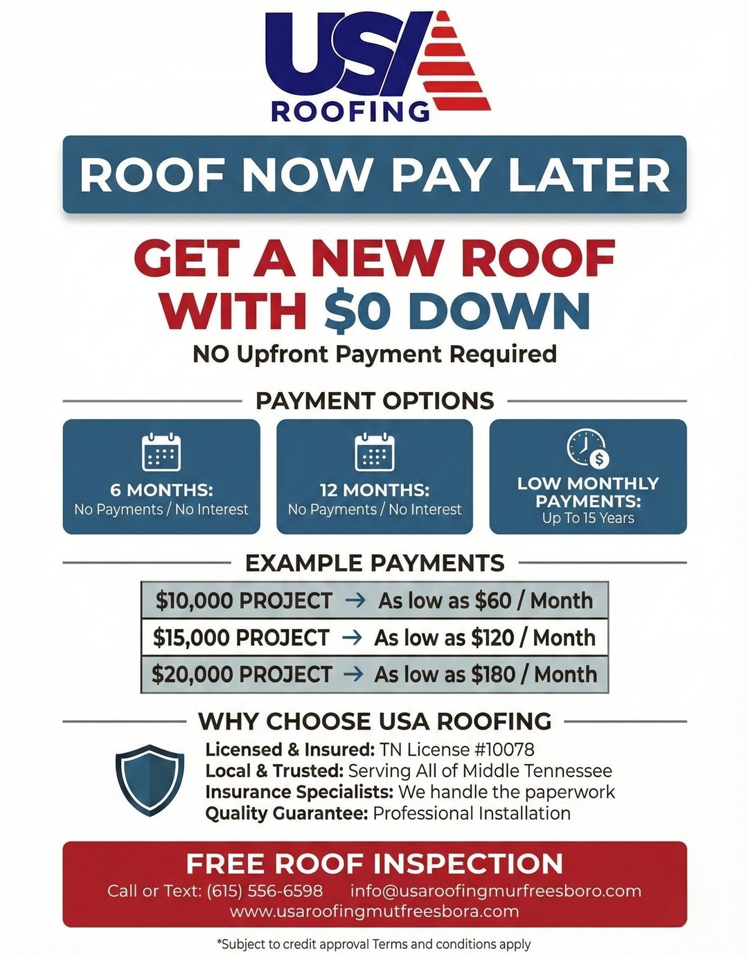 🏠Need a Roof Replacement in Columbia, TN? Financing Available!